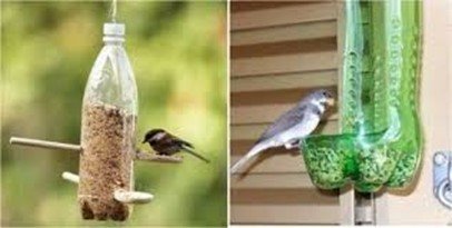Use recycled bottles to make bird feeders.