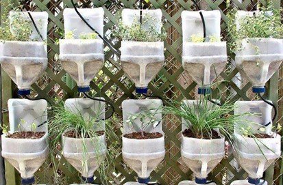 Here is a great way to reuse plastic milk bottles: plant a herb garden.