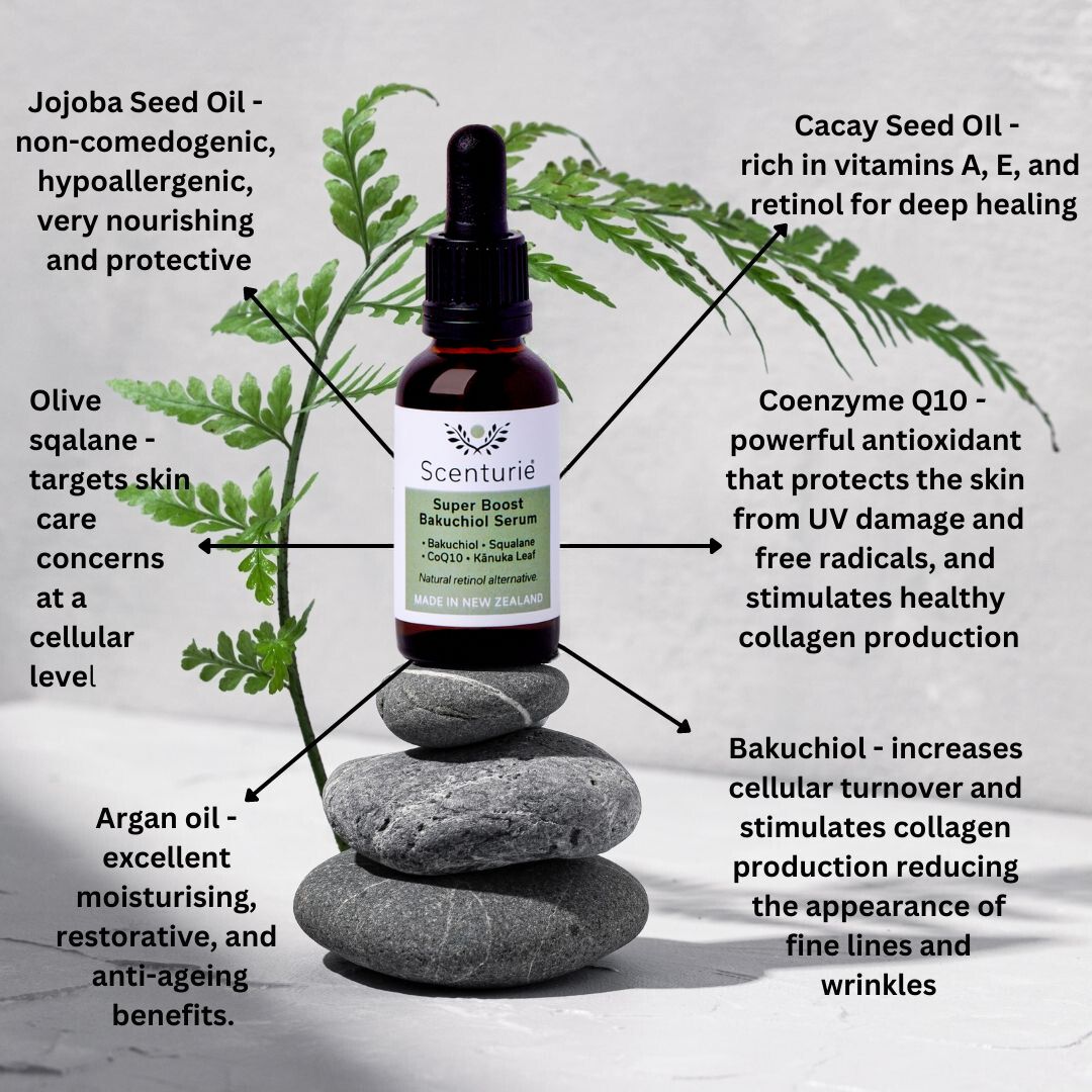 Experience the transformative power of nature with Scenturie’s Super Boost Bakuchiol Serum. Your skin will thank you.